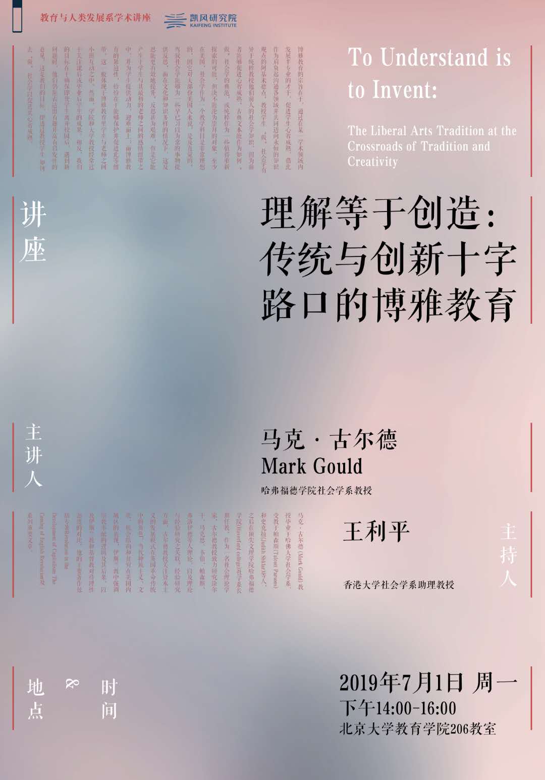 教育与人类发展系学术讲座:理解等于创造:传统与创新十字路口的博雅教育