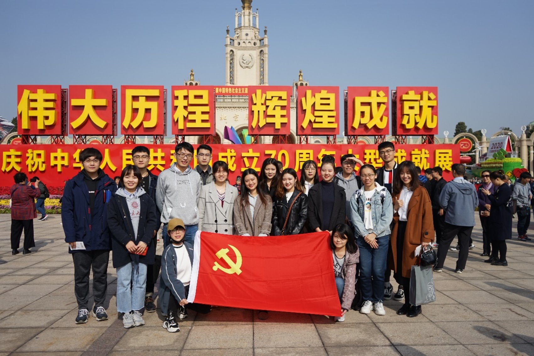 讨论结束后,支部的同学们在北京展览馆前重温了入党誓词。面对着鲜红的党旗,同学们在领誓人熊熙然同学的带领下,高举右拳,字字铿锵,庄严宣誓。重温入党誓词既使同学们能够不忘记自己入党的初心,也使同学们牢牢记住自身所承载的为中华民族伟大复兴奋斗的光荣使命。