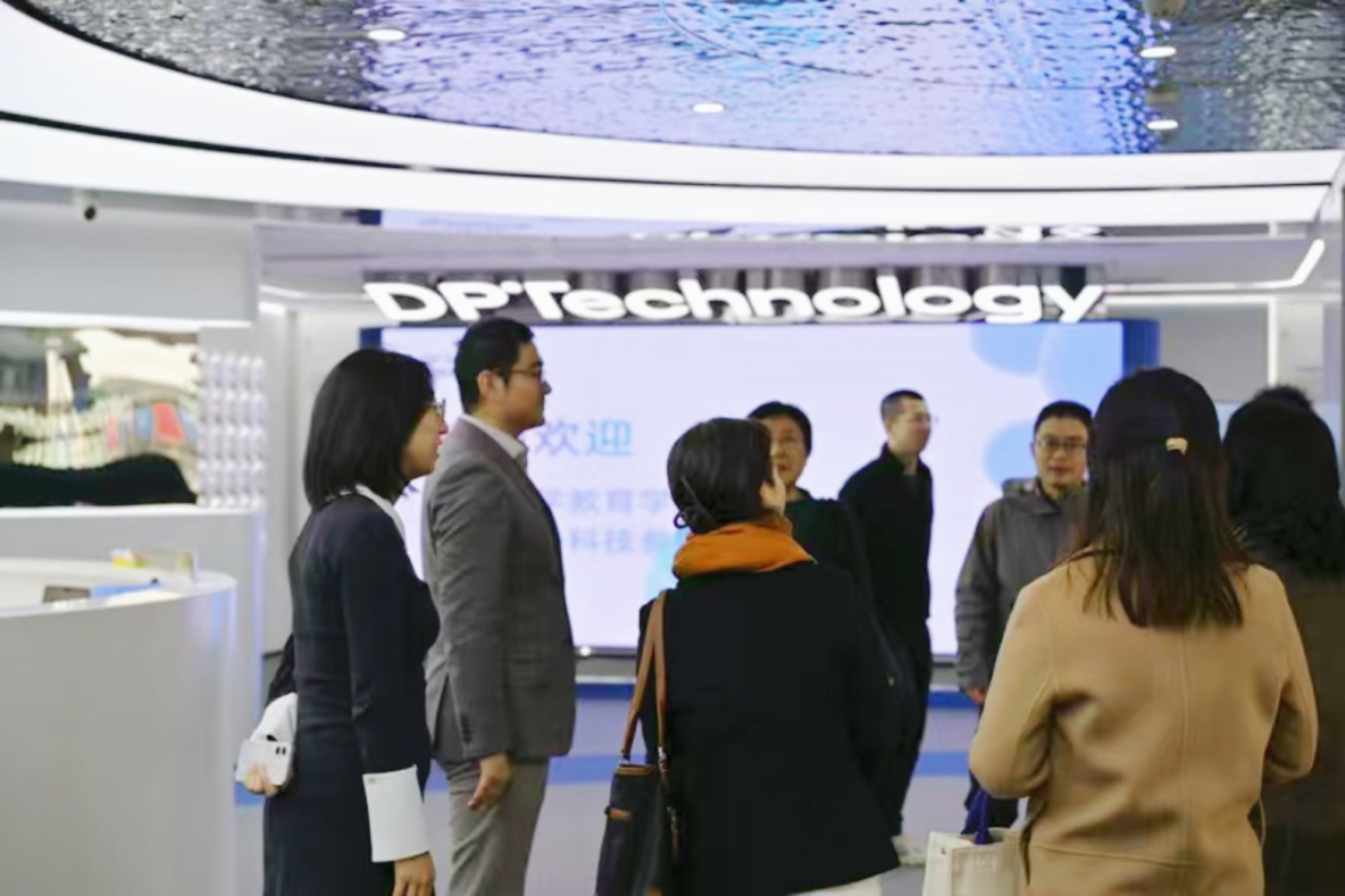 师生们首先实地走访了企业办公区域及产品展示区,近距离了解了深势科技在AI for Science领域的产品体系布局。通过宣传片,直观感受了原子大模型、分子模拟仿真平台等创新成果的应用场景,了解了人工智能与科学研究融合应用的最新进展。