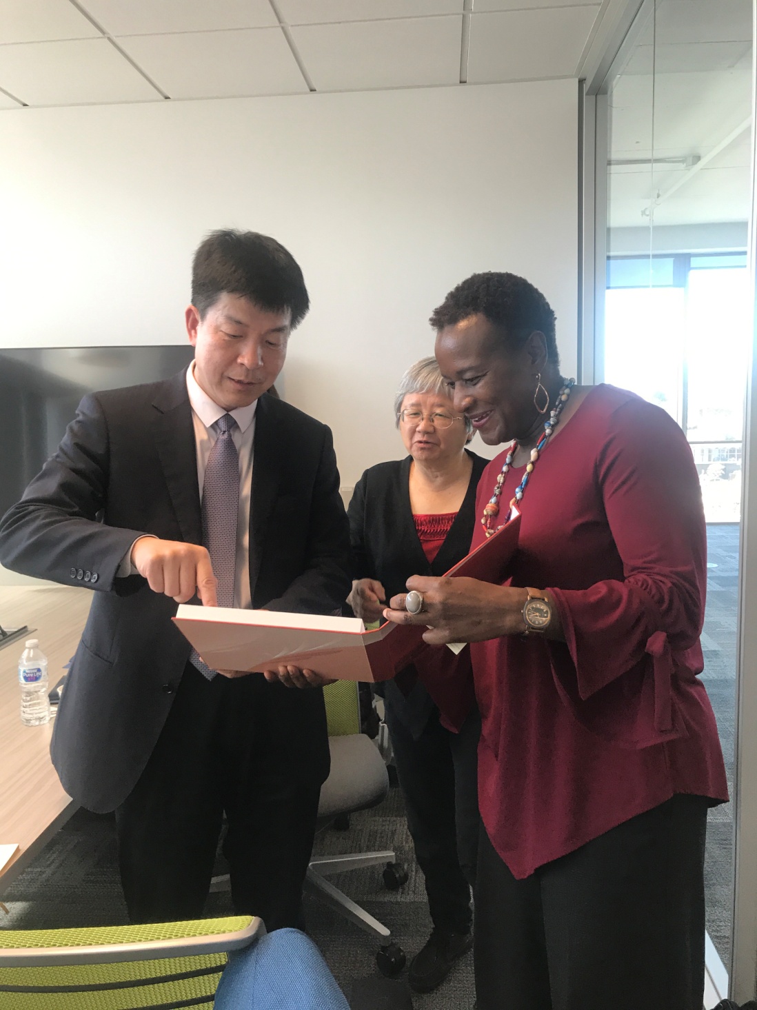 向加州伯克利大学教育学院Prudence Carter院长赠送纪念品