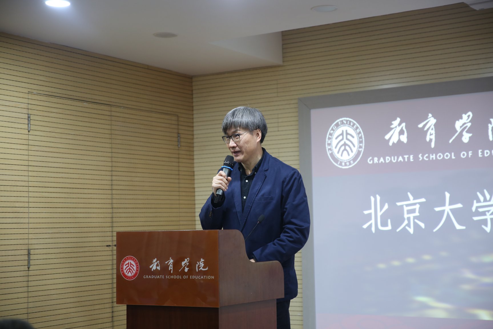 陈晓宇教授代表教育学院上届行政领导班子发言。他首先感谢了学校和党委组织部对教育学院行政领导班子换届工作的支持,感谢教育学院师生为学院发展和北京大学教育学科发展所做出的贡献。接着,他回顾了自己在北大的读书和工作经历,对追求卓越、以天下为己任、敢为天下先以及兼容并包、思想自由的北大精神表达了高度的认可和赞同,并希望教育学院师生秉持这些优良传统,继续创造新的成绩。
