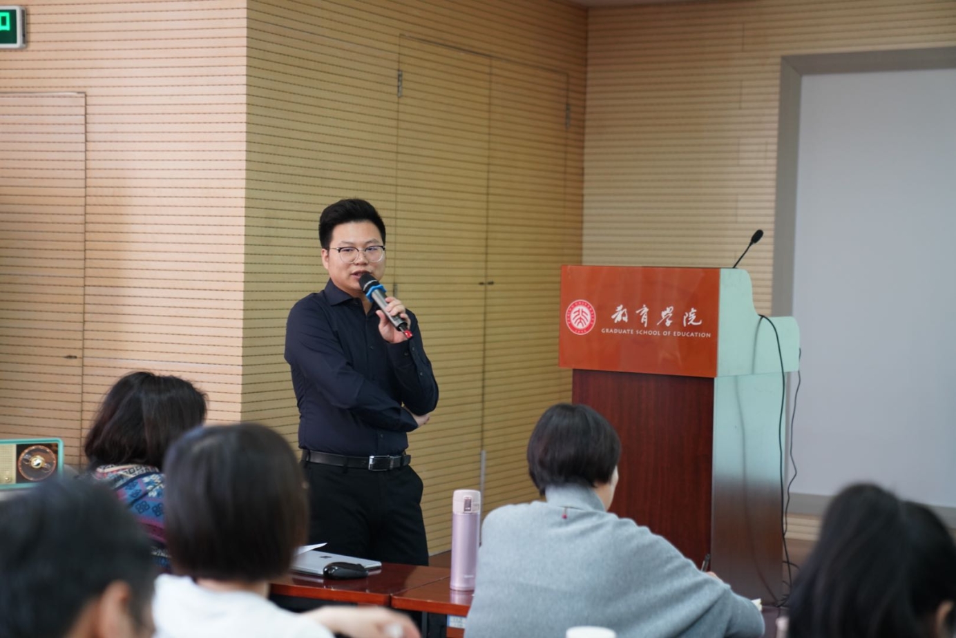 在随后的环节,北京大学教育技术系王宇博士就“如何打造高效的慕课师生团队——教师怎样与学生合作”话题分享经验、组织研讨。他围绕着“导师-助教模式”、“导师-项目经理-项目成员模式”、“导师-教学组-项目经理”三种师生团队运作模式引导在场人员共同探讨,列举并分析了构建高质量慕课团队的要点,如多元的学生团队构成、共同愿景、共享知识、有序的工作机制等的实现方式,最后提出了“实践共同体与合法的边缘性参与”是高效慕课教学团队的发展路径。