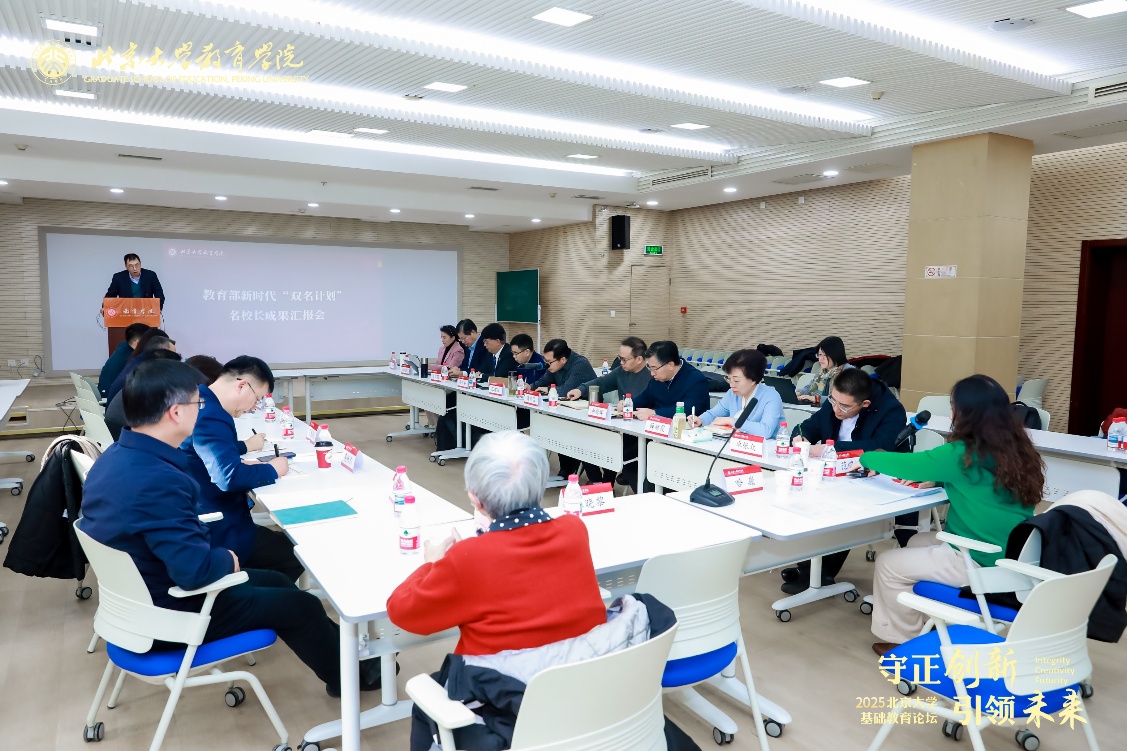 2025年12月26日下午,教育部新时代“双名计划”(2022-2025)北京大学基地成果汇报会在北京大学教育学院112报告厅隆重举办 。北京大学基地名校长培养对象齐聚燕园,展示三年来在理论研究、办学实践及辐射引领等方面的积淀与成果。北京大学教育学院党委书记张晓黎、副院长哈巍、副院长尚俊杰以及多位培养导师出席会议。